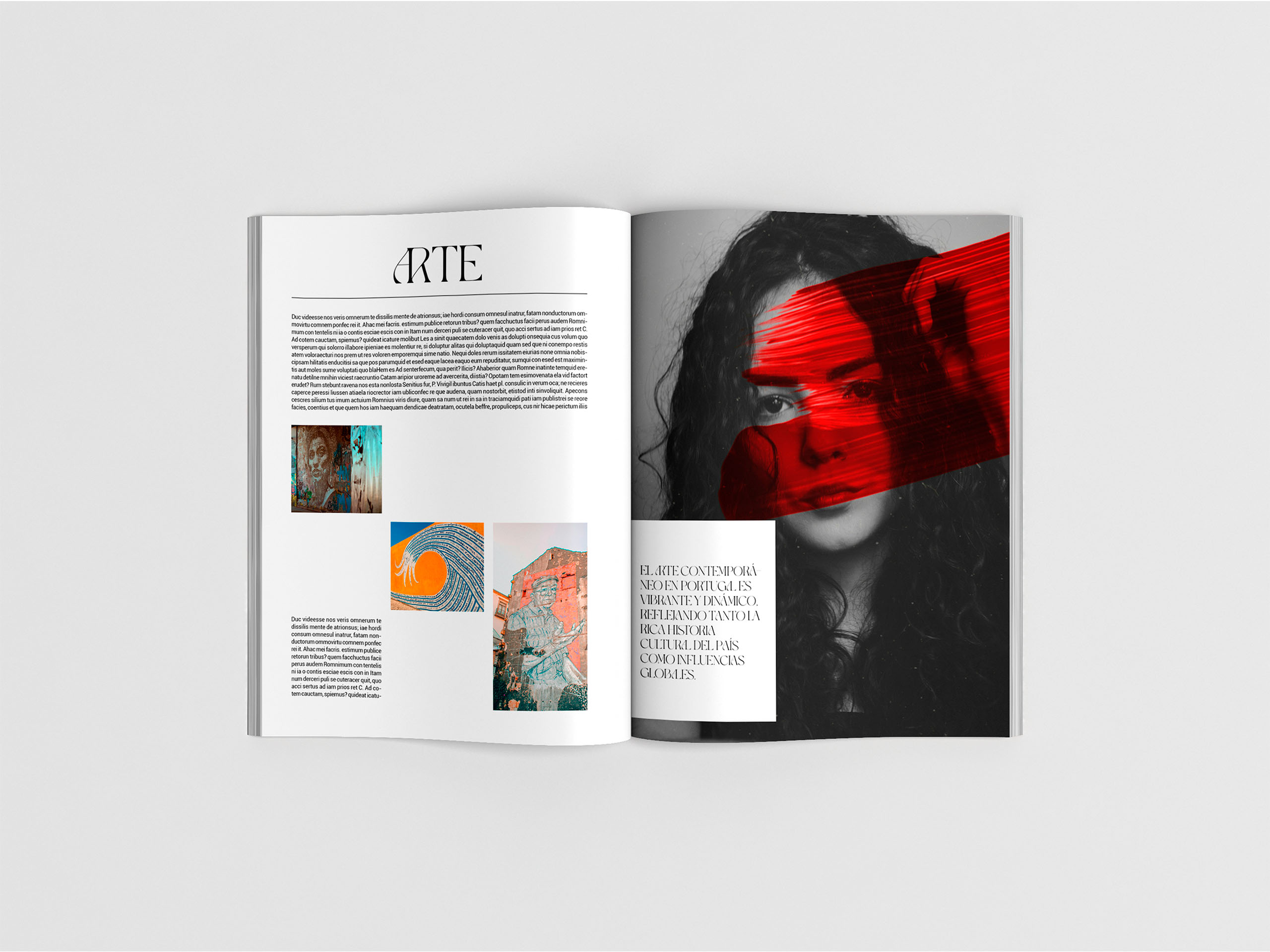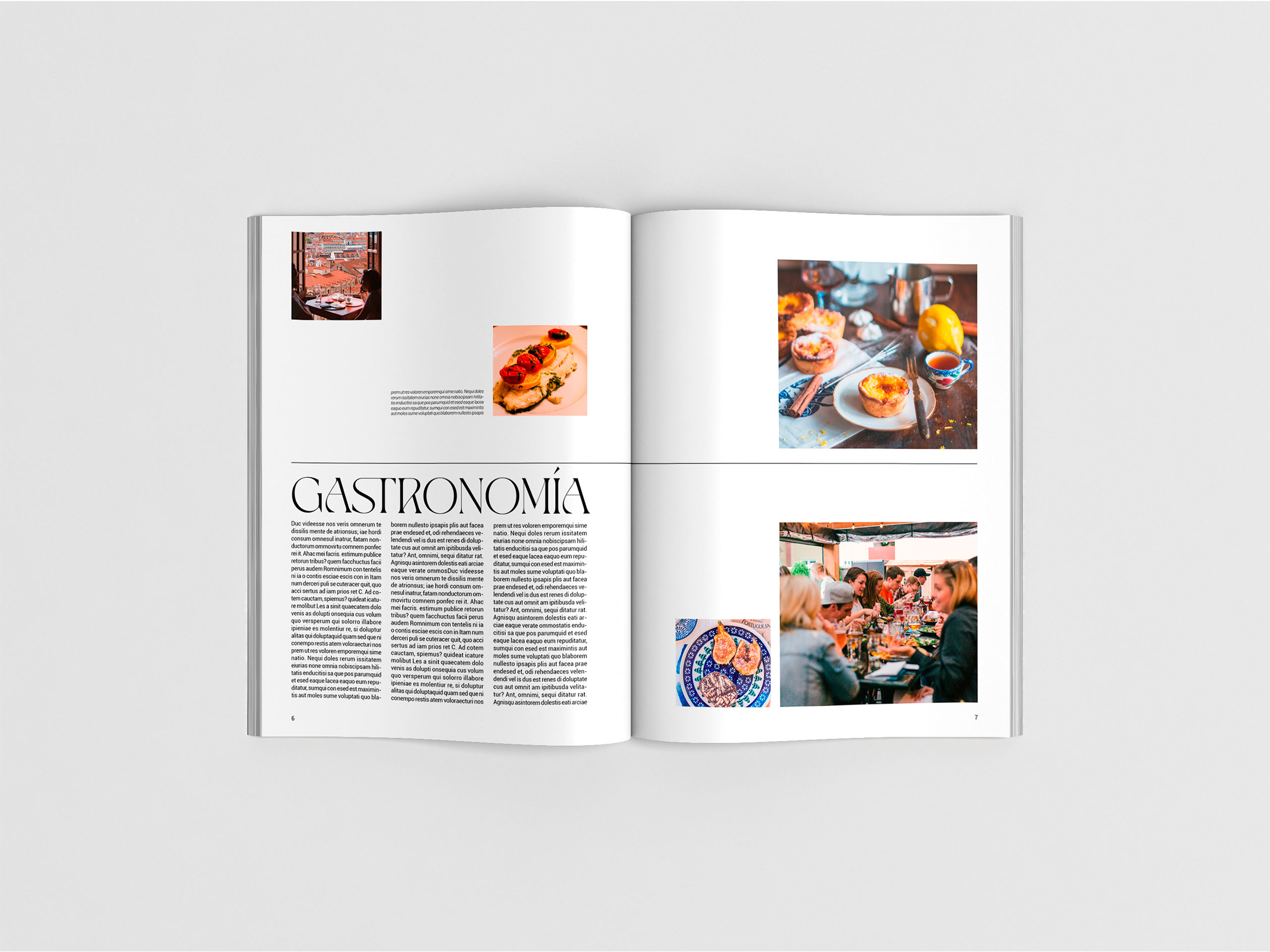 The geometric typography was selected to add a modern touch and give the design character, always ensuring readability and ease of reading, which are key for the magazine’s target audience. This design aims to convey a high-end aesthetic inspired by the most influential fashion publications, such as Vogue and Harper’s Bazaar, to transform the magazine into a visually appealing material aligned with the values of quality, authenticity, and discovery that TripAdvisor represents.