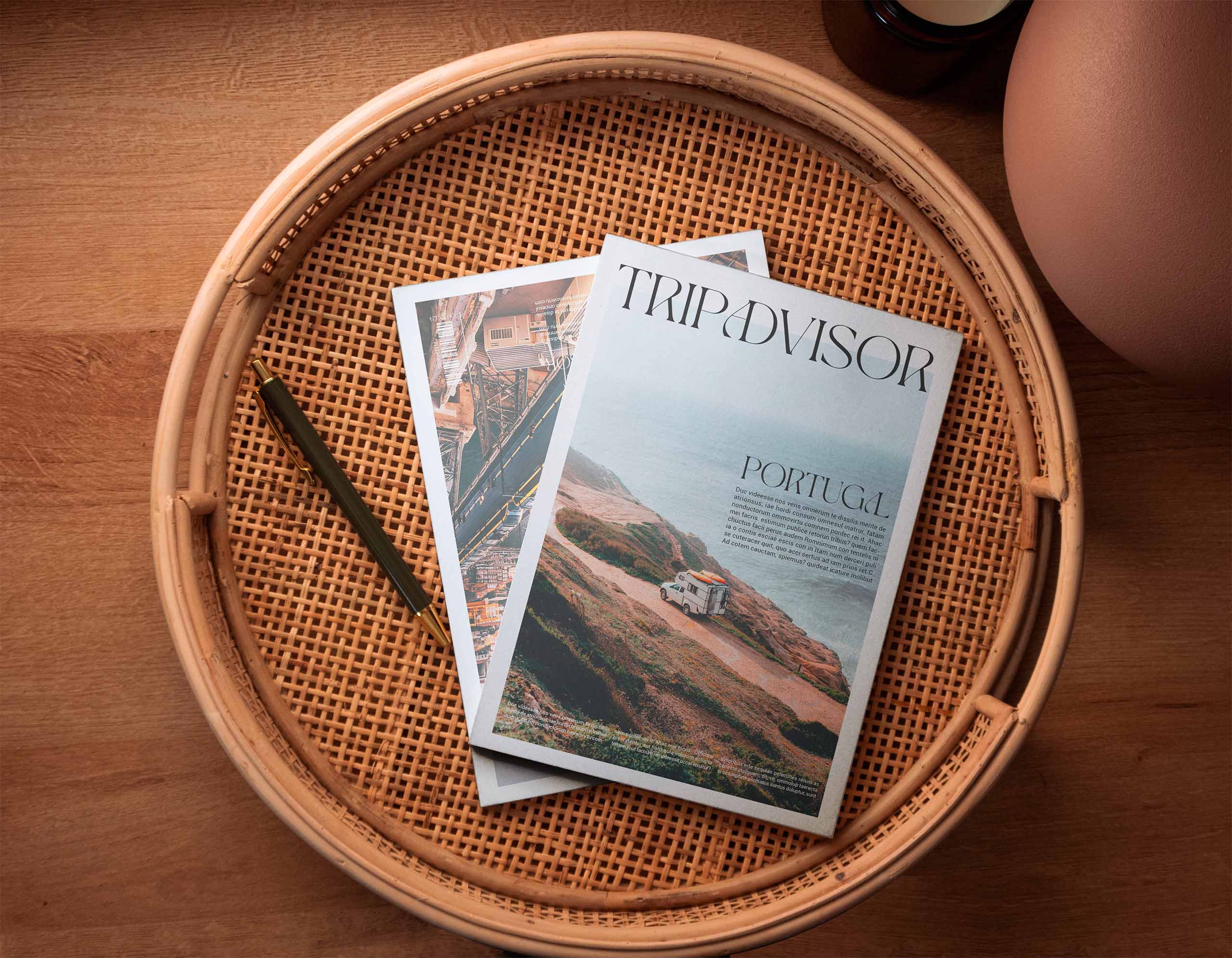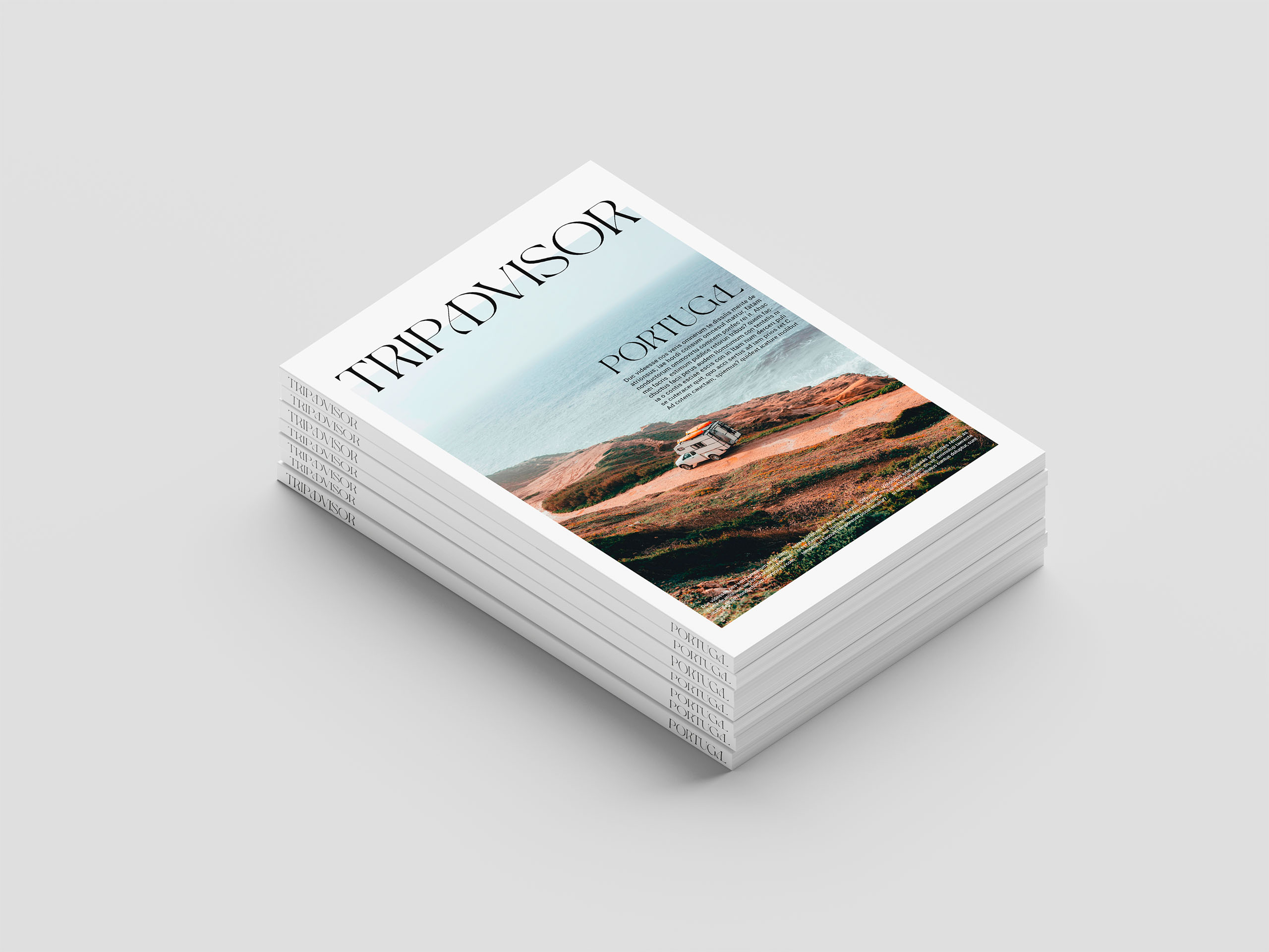 The design proposal for TripAdvisor’s magazine focuses on creating a modern and sophisticated visual experience that highlights both the content and the brand’s identity.
